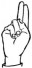 На ћирилици написано ВУКОСАВ ШКОБИЋ састоји се из 13 слова [?]. Исписано ћириличном једноручном азбуком за глувонеме: